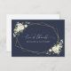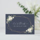 Lägg till en personlig touch till din bröllopsfirande med dessa stilrena och minnesvärda festartiklar! Designen har vita akvarellblommor, grönska och guldbåge på marinblå bakgrund.