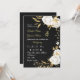 elegant lyxblommor, vita blommor och blommor från guld med en svart bröllopsinbjudan från guld löv. glitter-detaljerna simuleras