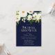 Vita blommor & Marinblå Elegant Bröllopsfest Inbjudningar