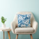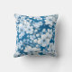 vita blommor mönster, blå bakgrund, kudde