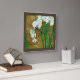Vita blommor som hänger av grönt härstammar i biet av Chariklia Zarris. Om du ställer in dig mot en brunt bakgrund och omges av en brun gräns är det en enkel målning med elegant. Lägg till den i ditt hem och njut av skönheten!