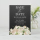 Vita blomster svart bröllop spara datumet