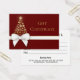 Luxuriös och rik helgdag med ett utmärkt Julgran-silhuett med guldsnöflingor. Dekoreras med en vit guld-presentbuske på en röd lush-bakgrund. Det här festliga presentcertifikatet är perfekt för ditt småföretag eller för presentvänner och familj.