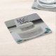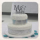 Ett skott av en vit Bröllop-kummelslingring med MR och MRS överst i Silver. Det är smart och färglöst som finns på Bröllop Underlägg.