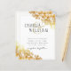 Vi presenterar våra inbjudningar till oljesasbröllop i Guld Snöre med en tidlös vit bakgrund! Dessa inbjudningar är perfekt för par som vill ha en klassisk inbjudan och en inbjudan till elegant som utstrålar sofistikering och glamor. Den tunna utseendet av folier från guld snöre tillför en aning lyx och förfining till den vita bakgrunden, vilket skapar en modern och chic effekt. Dessa inbjudningar är perfekter för formellt, svart bröllop och för par som vill ha en tidlös inbjudan till elegant. Den platta utskriftstekniken ser till att texten är tydlig och lättläst, så att dina gäster lätt kan förstå uppgifterna om din speciella dag. Inbjudningarna är helt anpassade, så du kan ändra text, teckensnitt och färg så att de stämmer överens med bröllop och stil. Våra inbjudningar att titta på bröllop i Guld mot en vit bakgrund är typiskt eleganta och sofistikerade. De är perfekt för par som vill ha en snyggt och en oförglömlig inbjudan som firar deras kärlek på ett modernt och förfinat sätt.
