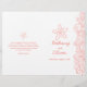 Enkel kontur av teckning i vitt och korall av en stjärt/havsabborre, med grafisk vågbrytare, kustnära bröllopsprogram. Fashionable modern strand stil bröllop är en del av havsstjärnan bröllop stationär station. Söt pastellskuggor av korallets rosa orange på vit bakgrund. Redigera det här bröllopsprogrammet med ditt eget namn, data, ceremonins ordalydelse, bröllopsfestens assistenter och tack. Ett enkelt program för elegant ersätter bara exempeltexten med bröllop-informationen och delar upp program till hälften vid leverans. Ett perfekt bröllopsprogram för en strand, ett kusthav som inspirerats eller ett havs-destinationsbröllop. Unik teckning och design av Sarah Trett. www.sarahtrett.com för www.mylittleedenweddings.com