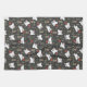 Illustrerade vita kaniner, tulpaner, röda blommor och löv på grått-bakgrund för vår och Påsk.
