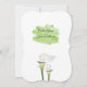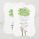 Denna design har vita calla liljor blommor och en grön akvarell penseldrag i bakgrunden. En elegant design som representerar grönska genom användning av akvarell som matchar de gröna stjälkarna av calla liljor. Denna enkla men eleganta blomsterdesign kan införlivas i alla bröllopstema. Unik bröllopsinbjudan design med moderna element. Matchande bröllop brevpapper och andra bröllopsinbjudan format finns också tillgängliga.