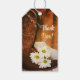 Sätt på de charmerande vita Daisyn och Märkrna Cowboyboots Land Westerna bröllopsfavoriter till party favors vid avslappnaden och ändå ta förlovningsfest, möhippa eller giftermål. De här anpassningsbarna för rustik chic, rustik chic bröllopsfavoriter har en blommigt foto av ett par bruna cowboystövlar, en bukett av vita blommar för blommor och möhippa med brunt vävt laved.