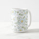 En blommigt skriver ut mugg med en söt mönster av vita daisy och blommar med grönt löv och firar naturens skönhet.