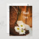 Anpassa det charmerande Vita Daisyn och CowboyBoots Land Westerna Bröllop Tack-vykortet med ditt personliga tack, tacksamhet och uppskattning. Det här anpassningsbar-ranchtemat för rustik chic tack vare vykortet har ett digitalt färgfoto av bruna cowboystövlar, vita blommar av daisy, vita möhippor och bruna lingor.