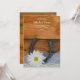Bjud in gäster till din informella och eleganta lantliga bröllopsfest med den charmiga landliga bröllopsinbjudan "White Daisy and Horseshoe Country Western Wedding Invitation". Detta avslappnade men ändå klassiska bröllopskort med hästtema har ett pittoreskt fotografi med en vit tusenskönablomma, en rostig hästsko, ett pärlhalsband och en vit brudslöja på en väderbiten brun lada i trä som bakgrund. Perfekt inspiration för ett avslappnat bröllop med fest i en lada.