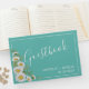 Söt personligt bröllp guestbook-designen har vattenfärgsvit daisy hörn på ljusteoribakgrund med vita anpassaden i modernt typsnitt