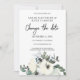 Vita & dammiga blå blommiga ändra datum detaljer inbjudningar
