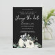 Vita & dammiga blå blommor på svart datumändring inbjudningar
