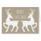 Den här anpassningsbara beige och vita hälsningskortet ger Desteis illustration av två vita hjort silhuetter som är vända mot varandra. Mellan hjorten står det: "God jul!". Det finns också ett anpassningsbara textområde för ett meddelande inuti kortet.