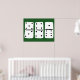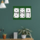 Den här enkla, moderna designen poster handritade illustrationer av tre dominoplattor i stil i vitt med svarta punkter och tryck på dem mot gröntens bakgrund.