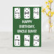 Lägg till ditt eget anpassade meddelande för att skapa det perfekta personliga gratulationskortet för alla tillfällen. Detta kort har enkla, handritade illustrationer av vita dominobrickor med svarta prickar och tryck mot en grön bakgrund. Meddelandet på framsidan och på insidan kan anpassas med din egen text.