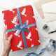 Vita Dove Bird med Olive Gren på Red Presentpapper