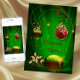 Gröna röda och gyllene julkulor och jolhekvit elefant present jul firande festinbjudningar.