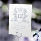 Vit med bordsnummer av konsten teckning i silver krona vapensköld. Redigera bordsnumret bröllop med datumet par namn och bröllop. Bord-kort måste läggas till i din kundvagn en i taget, rabatter kan gälla för många-kort. Ursprunglig utformning och vapensköld med hjärta krona, med löv och bär hand teckning av Sarah Trett för www.mylittleedenweddings.com endast på Zazzle.