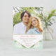 Den övergripande utformningen blandar tradition med en modern överstrålning. Pastel färg och vita blommor väcker traditioner, medan sans serif-texten och det geometriska inslag kommer ihåg det moderna. Lilies representerar renhet och nytt liv, och deras form ger ett djärvt men mjukt tema för blommigt för ett bröllop. Bits av guld och mörkare gröntar blandas in i färg-myntprogrammet för uppvärmning. En korallkrok markerar däremot viktiga namn och rubriker. Anpassa med ett personligt foto.
