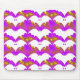 Sött mönster av vita fladdermöss med slingor och slipsar på gul och rosa bakgrund.