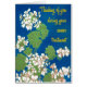 Ett hälsningskort för söt och blommigt till stöd för någon som behandlas för cancer, med vita bakterier i blå botten, från ett skärmtryck av Judy Adamson. Du kan lägga till ett eget inuti meddelande.