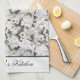 Vita Grå Svanar Blommor Blommig elegant kökshandduk. En fin bröllopspresent, eller förnya din egen köksinredning med nya handdukar.