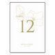Den här chicen och det moderna vita bröllop-bordsnumret har ett känsligt blommigt inslag i ett lätt faux guld färg, vid sidan av en contemporary typsnitt i faux guld i. Utformningen upprepas på båda sidor av kortet för att det ska vara enkelt att se. Denna enkla utformning kostym det moderna paret snyggt och elegant. Det finns variationer i den här designen i fullt.