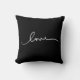 Vita handskrivna kärlek på svart bakgrund fyrkantig kudde