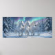 Vita hästar under norrsken i vinterskog poster