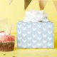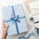 Vita hjärtan på ljusblå linne presentpapper