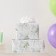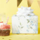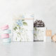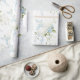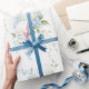 Vackra vita hydrangeas blandade med blå blommor och mjuk grönska användes för att skapa detta vackra presentpapper.