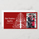Newlyweds firar din första gifta jul.... - Vita Julgran på Röda första julklappen - Fotokortet var designat för dig! Anpassa den med ditt fotografi av namn och bild eller bröllop. Den här snygga anpassningsbarna 1:a julafton tillsammans med fotokortet har en kompakt vektordesign för Julgran på röd bakgrund.