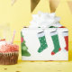 Vita julikoner och dekorationer med God jul inslagna pappert. Den här presentfigurationen har tomten, presenter, renar, Julgran, lager, godis, bauble och julklapp klockor. Du kan redigera om du vill ändra bakgrunden från vitt till valfritt färg.