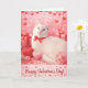 Det här är ett foto av min vita katt med ett blått och ett grönt öga. Hans namn är Snow, och han är en skönhet! Det här är ett sött rosa valentinskort med rosa hjärtan, presenter och rosor.
