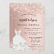 En modern, snyggt och glamorös inbjudan till Möhippa. Ro guld, övertoningsbakgrund med faux glitter, gnistor och vit klänning. Namn är skrivet med ett modernt handskript i stil. Anpassa och lägg till information om party.