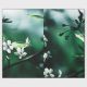 Närbild av vita körsbärsblommor inuti ett körsbärsträd. Lek med gröna och vita färger, starkt ljus och mörka skuggor. - Blommorna skingras av vinden och vinden bryr sig inte, men hjärtats blommor kan ingen vind beröra. (Yoshida Kenko)
