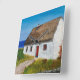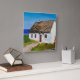 Vit stuga som förbiser havet. En gammal sten Croft med en åskad tak och välkommen röd dörr. Perfektens gåva till en husuppvärmning. Det här skulle vara en underbar gåva till ge för någons kök. Originalet var målat med akryl i ett stil på ett imponerande sätt. från Charlotte Foster vid RivvyArts