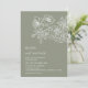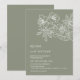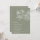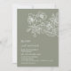 Denna eleganta samtida bröllopsinbjudan har vita linje konst blommor och vit script på en salvia grön bakgrund.