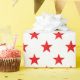 En festlig omslutning papper för julens julhelg med ljusröda stjärnor på vit bakgrund. Den här bakgrunden färg kan ändras till valfritt färg. Gå till designpanelen och välj sedan "Bakgrund" på höger sida och markera sedan färg.