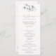 En handdragen gren av vita magnoliska blommor dekorerar denna elegant, svart på vitt, enkelt, klassligt och modernt ceremoniprogram för bröllop som är perfekten runt, sommaren, vår, hösten eller vintern. Den har modern, elegant-skriptkalligrafi med gott om blomning. Luxuriös men enkel, klassisk men chic, modern men tidlös. Ett vackert val för ett par gifta sig under vilken säsong som helst, som gillar svartvita konst för bröllop-stationär, svart och vit, naturligt inslag och magnolias.