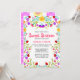 Blommigt Sweet sixteen Bjud in din dotters 16:e födelsedagsfirande. Det här söt temat har ljusa och färgstarka mexikanska konstblommor i rött, rosa, lila och gult på vit bakgrund. På baksidan av kortet finns mexikanska fiesta, blommigt papel picado i mjuk lila, gult och rosa. Mallen är konfigurerad så att du kan anpassa redot med alla dina personuppgifter för ditt söta 16-födelsedagsbarn party. Bläddra i vår butik för att hitta matchande och koordinerande element.