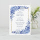 Vita och Blå Blommor Guldram Bröllop Inbjudningar