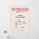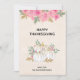 Thanksgiving-kort med eleganta vita pumpa i akvarell med inslag av falskt guldglitter. Omgiven av gröna blad och rosa vilda blommor.