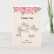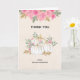 Tack-kort med utsökta akvarellvita pumpor med inslag av falskt guldglitter. Omgiven av gröna blad och rosa vilda blommor.