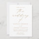 Minimalistisk, modern bröllopsinbjudan med dina bröllop-detaljer i enkla guld-bokstäver med "bröllop av" i ett kalligrafiskt skript för elegant. Den fasta vita bakgrunden kan ändras till en valfri färg. Designad att samordna med vår moderna elegance bröllop-samling.