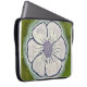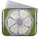 Den här jättelika vita och lila pansyen brinner av laptop sleeve. Den handmålade designen sitter på en grönt av riken. Originalkonsten är handmålad - inte en AI-design.