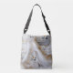 Vita och ljusblå Silky Flowers på ett Silke-utseen Axelväska